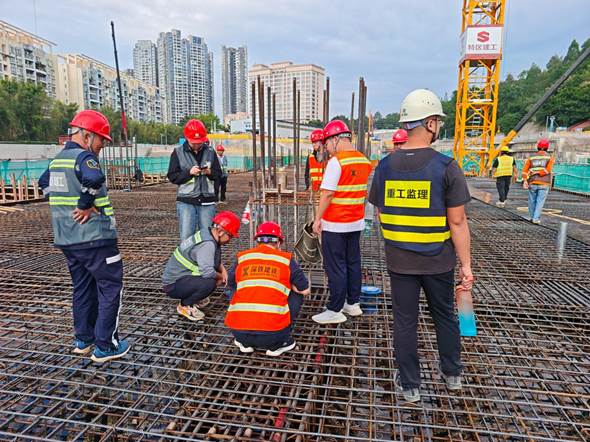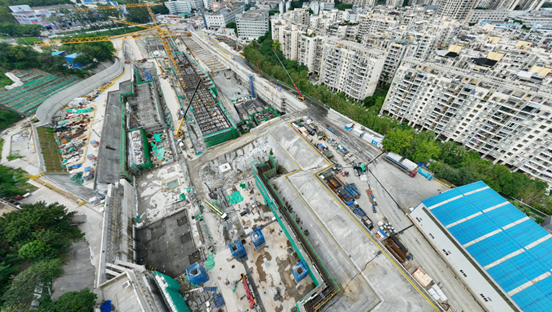南灣停車場施工環(huán)境復(fù)雜,依山建場、地下暗埋、雙層多跨,并與求水山站共坑建設(shè);技術(shù)要求高、支模高度大(中板支模高度達(dá)9.7米)、梁體截面大(最大梁的斷面尺寸1.7米高×0.8米寬)。自正式進(jìn)場以來,深圳市政集團(tuán)地鐵17號線項目黨員先鋒隊率先垂范,主動靠前,充分發(fā)揮戰(zhàn)斗堡壘和模范帶頭作用,全體參建人員秉承“精益建造,使命必達(dá)”的精神,科學(xué)統(tǒng)籌,周密組織,全面克服了降噪施工、共坑作業(yè)、坑中坑施工、坑外場地卡點多、運(yùn)輸通行條件差、連續(xù)臺風(fēng)暴雨等多重困難。